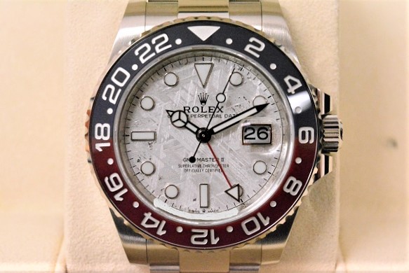 ロレックスのGMTマスターⅡ126719BLROは2019年の新作で発売され、メテオライト文字盤は数が少ない文字盤としても有名で、メテオライトは宇宙から落下した隕石なので希少価値が付いています。
