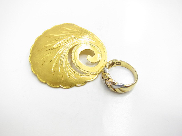 K22金&K18金プラチナPt900コンビブローチやリング総重量28.3g買取いたしました。
