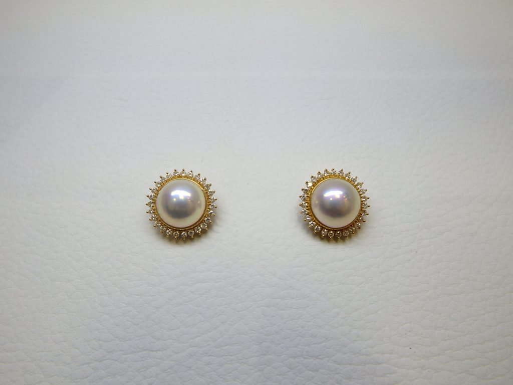 お持ち込みになられました商品は田崎マベパールイヤリングk18金メレダイヤモンド0.41ct×2です。