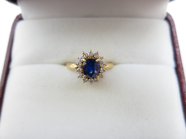 お持ち込みのお品は『サファイア・ダイヤモンドK18リング S1.58ct D0.30ct』