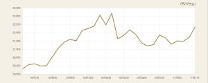 過去最長となっている米政府機関の一部閉鎖が数日以内に解除される見通しとなり、重要な経済指標である雇用統計が遅れて発表され12月のFOMCで利下げの可能性が見えてきたためです。金利を生まない金は、通常利下げが追い風になります。